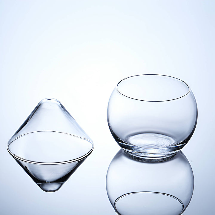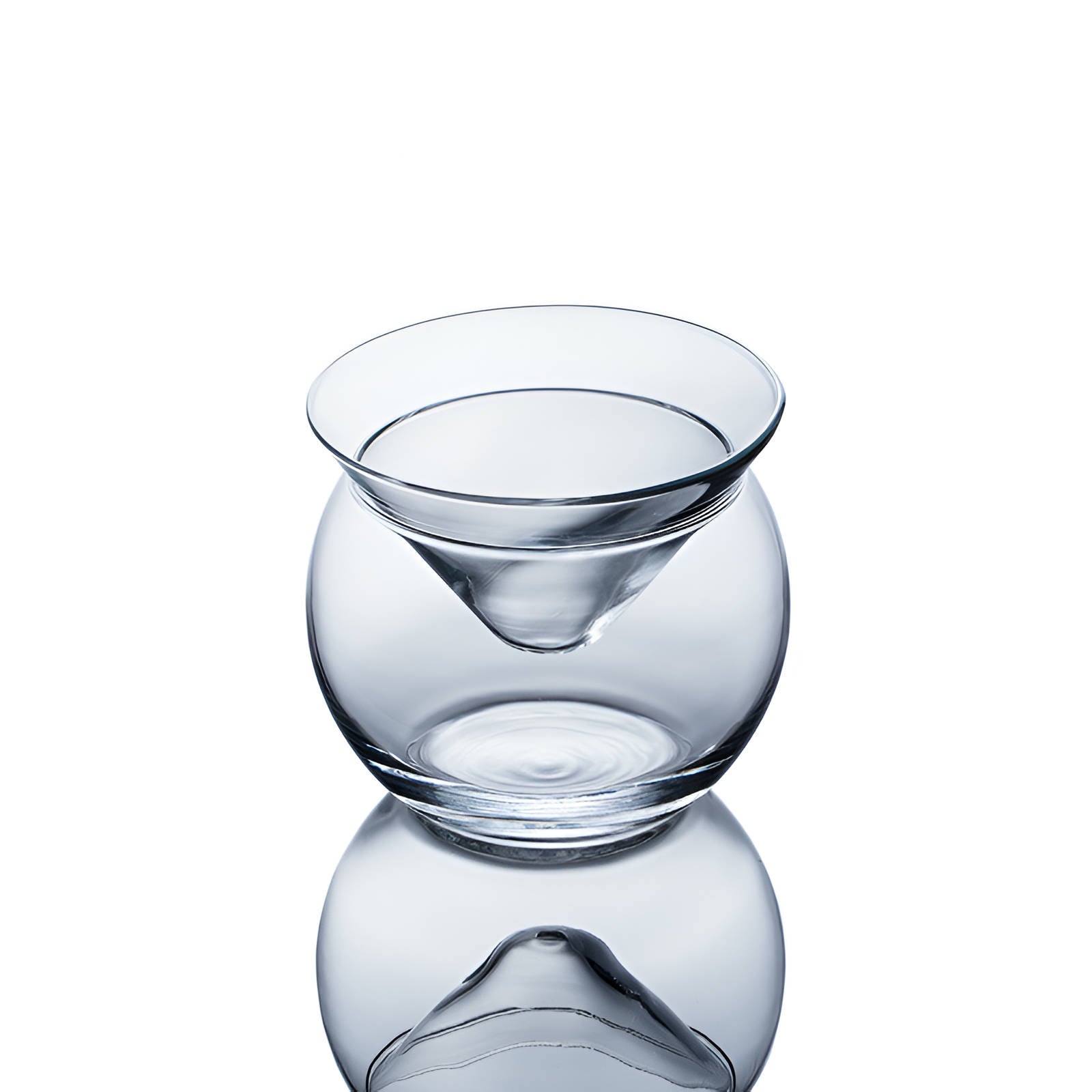 Het bovenste deel van ons glas is gevormd als een klassieke martini-beker, ideaal voor het bereiden en serveren van uw favoriete cocktails. Het onderste deel is een rond glas dat perfect is om ijs in te doen. Hierin plaats je het martini-glas met je cocktail naar keuze, waardoor je drankje koel blijft terwijl het er visueel verbluffend uitziet.